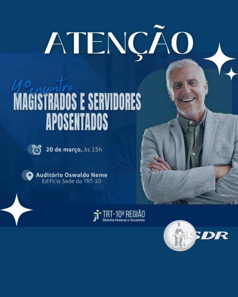 O presidente do Tribunal Regional do Trabalho da 10ª Região, desembargador Ribamar Lima Junior, convida magistrados e servidores aposentados para participarem da 4ª edição do Encontro de Magistrados e Servidores Aposentados do TRT-10, com o tema: