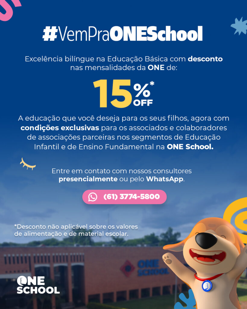 A educação que você deseja para os seus filhos, agora com condições exclusivas para os associados e colaboradores de associações parceiras nos segmentos de Educação Infantil e de Ensino Fundamental na ONE School.
