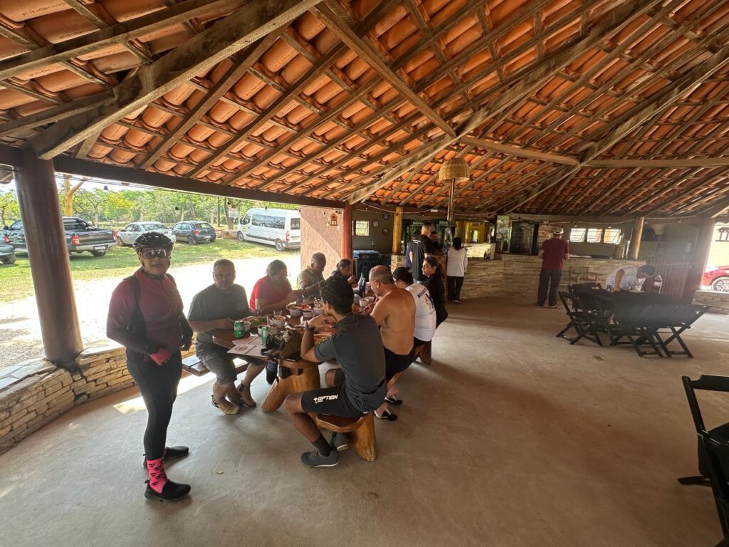 Foram montados dois Pontos de Apoio estrategicamente distribuídos ao longo do percurso, oferecendo lanches, frutas, repositores energéticos e hidratação adequada. Essa organização fez toda a diferença para que cada participante pudesse manter o ritmo e aproveitar ao máximo a experiência de pedalar por entre as belas paisagens do Cerrado.