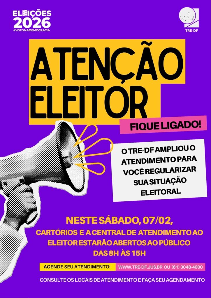A ampliação do atendimento busca atender principalmente pessoas que enfrentam dificuldades para comparecer aos cartórios em dias úteis. Para garantir maior comodidade e agilidade, o TRE-DF orienta que o atendimento seja previamente agendado. O agendamento pode ser feito pelo site oficial do Tribunal, www.tre-df.jus.br, ou pelo telefone (61) 3048-4000, onde também é possível consultar os locais disponíveis para atendimento.